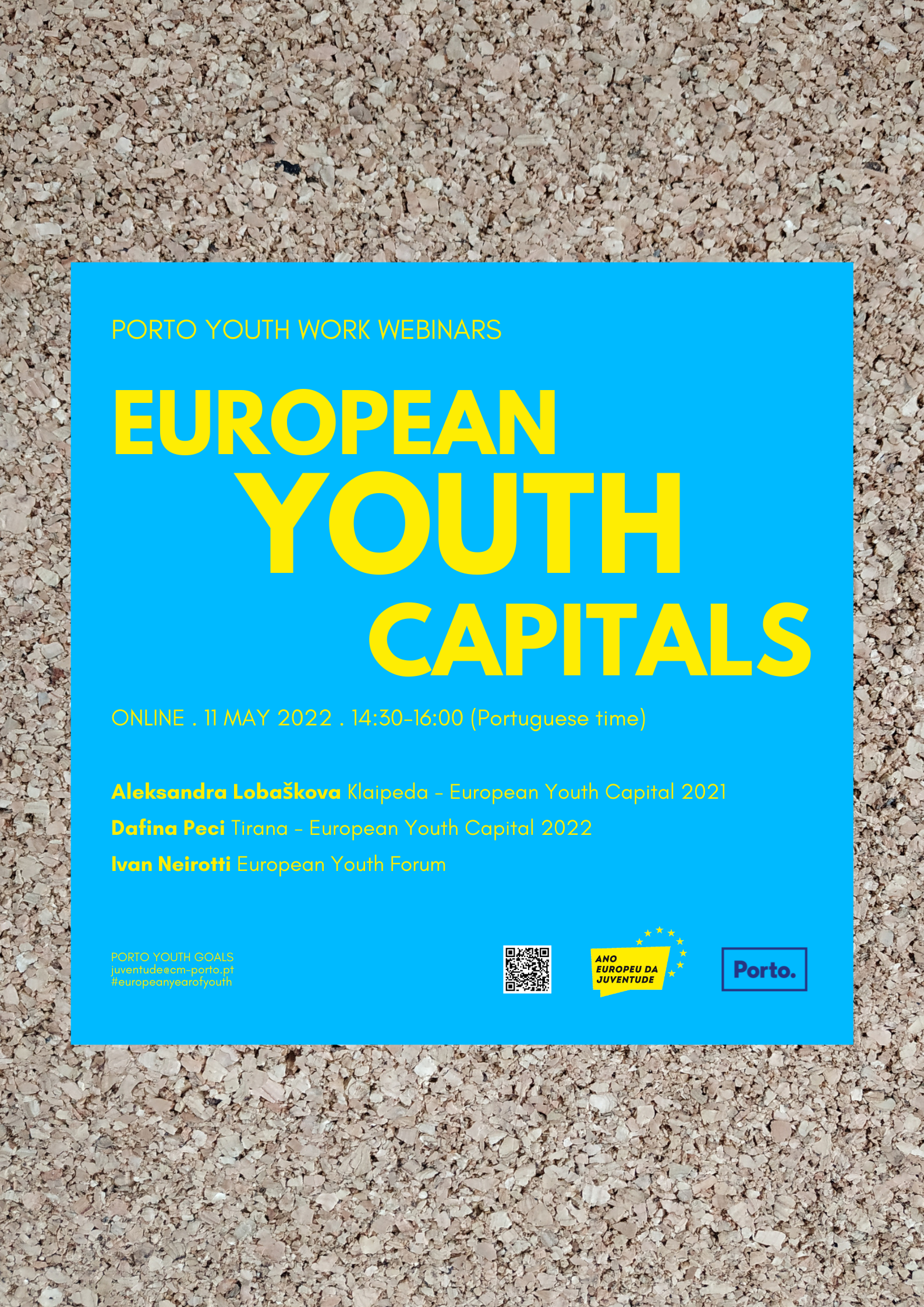 Os Porto Youth Work Webinars são um espaço de aprendizagens entre pares, que promove a partilha de recursos, boas práticas e inspiração, com vista à melhoria contínua das políticas de juventude, participação jovem e trabalho com jovens, a nível local. Nesta segunda edição, aproveitamos o Ano Europeu da Juventude para expandir possibilidades.
