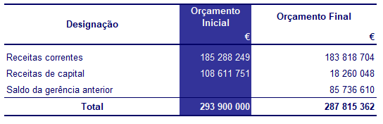A receita do orçamento final teve, em termos globais, um decréscimo de 6,1 milhões euros quando comparado com o orçamento inicial. Pese embora a incorporação do saldo de gerência transitado do ano anterior, esta variação resulta da redução, essencialmente, nas receitas inicialmente previstas no âmbito da comparticipação de candidaturas, em ativos e passivos financeiros, nos rendimentos de propriedade e na venda de bens de investimento, nomeadamente de terrenos.