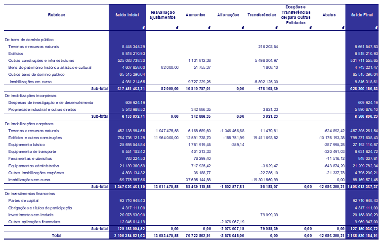 No âmbito do investimento realça-se que os investimentos indiretos constituídos pelos bens imóveis construídos ou recuperados pelas empresas municipais por delegação do Município e que fazem parte do imobilizado estão refletidos no Balanço do Município.
