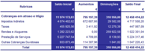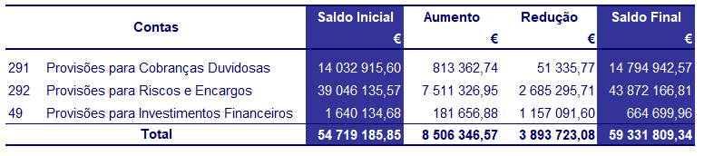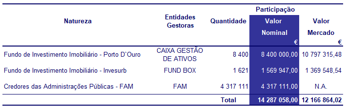 Por força do processo de liquidação do Fundo Porto Novo, os ativos financeiros têm uma variação positiva de 71,2 mil euros, face ao anterior.